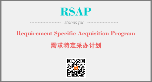 上述内容是“Requirement Specific Acquisition Program”作为“RSAP”的缩写,解释为“需求特定采办计划”时的信息,以及英文缩略词RSAP所代表的英文单词,其对应的中文拼音、详细解释以及在英文中的流行度和相关分类、应用领域及应用示例等。