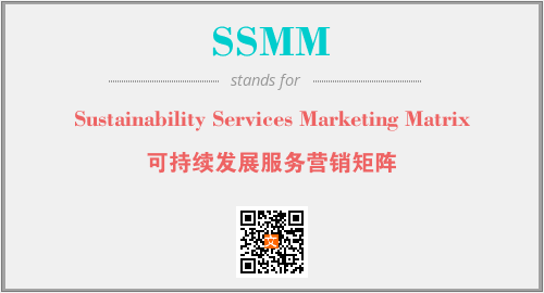 上述内容是“Sustainability Services Marketing Matrix”作为“SSMM”的缩写,解释为“可持续发展服务营销矩阵”时的信息,以及英文缩略词SSMM所代表的英文单词,其对应的中文拼音、详细解释以及在英文中的流行度和相关分类、应用领域及应用示例等。