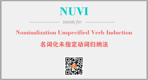 上述内容是“Nominalization Unspecified Verb Induction”作为“NUVI”的缩写,解释为“名词化未指定动词归纳法”时的信息,以及英文缩略词NUVI所代表的英文单词,其对应的中文拼音、详细解释以及在英文中的流行度和相关分类、应用领域及应用示例等。