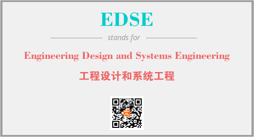 上述内容是“Engineering Design and Systems Engineering”作为“EDSE”的缩写,解释为“工程设计和系统工程”时的信息,以及英文缩略词EDSE所代表的英文单词,其对应的中文拼音、详细解释以及在英文中的流行度和相关分类、应用领域及应用示例等。