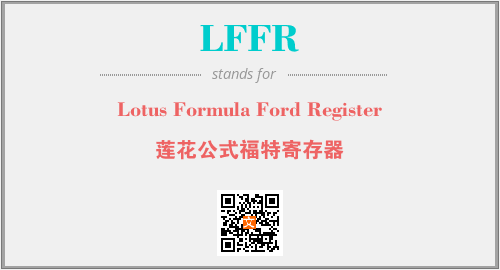 上述内容是“Lotus Formula Ford Register”作为“LFFR”的缩写,解释为“莲花公式福特寄存器”时的信息,以及英文缩略词LFFR所代表的英文单词,其对应的中文拼音、详细解释以及在英文中的流行度和相关分类、应用领域及应用示例等。