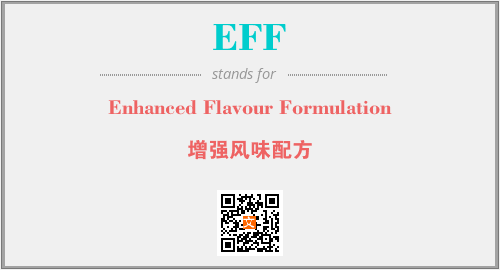 上述内容是“Enhanced Flavour Formulation”作为“EFF”的缩写,解释为“增强风味配方”时的信息,以及英文缩略词EFF所代表的英文单词,其对应的中文拼音、详细解释以及在英文中的流行度和相关分类、应用领域及应用示例等。