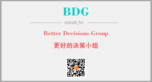 上述内容是“Better Decisions Group”作为“BDG”的缩写,解释为“更好的决策小组”时的信息,以及英文缩略词BDG所代表的英文单词,其对应的中文拼音、详细解释以及在英文中的流行度和相关分类、应用领域及应用示例等。