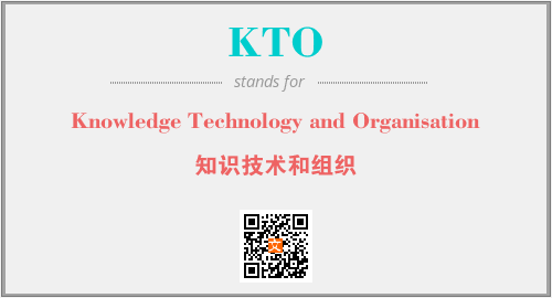上述内容是“Knowledge Technology and Organisation”作为“KTO”的缩写,解释为“知识技术和组织”时的信息,以及英文缩略词KTO所代表的英文单词,其对应的中文拼音、详细解释以及在英文中的流行度和相关分类、应用领域及应用示例等。