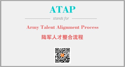 英文缩略词“ATAP”经常作为“Army Talent Alignment Process”的英文缩写来使用,中文表示:“陆军人才整合流程”。本文将详细介绍英文缩写词ATAP所代表英文单词,其对应的中文拼音、详细解释以及在英语中的流行度。此外,还有关于缩略词ATAP的分类、应用领域及相关应用示例等。