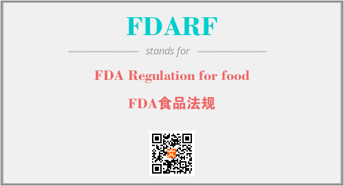 上述内容是“FDA Regulation for food”作为“FDARF”的缩写,解释为“FDA食品法规”时的信息,以及英文缩略词FDARF所代表的英文单词,其对应的中文拼音、详细解释以及在英文中的流行度和相关分类、应用领域及应用示例等。