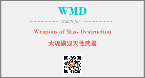 英文缩略词“WMD”经常作为“Weapons of Mass Destruction”的英文缩写来使用,中文表示:“大规模毁灭性武器”。本文将详细介绍英文缩写词WMD所代表英文单词,其对应的中文拼音、详细解释以及在英语中的流行度。此外,还有关于缩略词WMD的分类、应用领域及相关应用示例等。