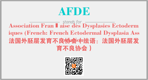 以上为Association Française des Dysplasies Ectodermiques (French: French Ectodermal Dysplasia Association)英文缩略词AFDE的中文解释,以及该英文缩写在英语的流行度、分类和应用领域方面的信息。