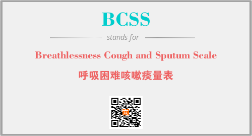 上述内容是“Breathlessness Cough and Sputum Scale”作为“BCSS”的缩写,解释为“呼吸困难咳嗽痰量表”时的信息,以及英文缩略词BCSS所代表的英文单词,其对应的中文拼音、详细解释以及在英文中的流行度和相关分类、应用领域及应用示例等。