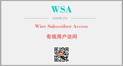英文缩略词“WSA”经常作为“Wire Subscriber Access”的英文缩写来使用,中文表示:“有线用户访问”。本文将详细介绍英文缩写词WSA所代表英文单词,其对应的中文拼音、详细解释以及在英语中的流行度。此外,还有关于缩略词WSA的分类、应用领域及相关应用示例等。