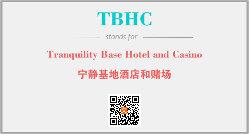 上述内容是“Tranquility Base Hotel and Casino”作为“TBHC”的缩写,解释为“宁静基地酒店和赌场”时的信息,以及英文缩略词TBHC所代表的英文单词,其对应的中文拼音、详细解释以及在英文中的流行度和相关分类、应用领域及应用示例等。