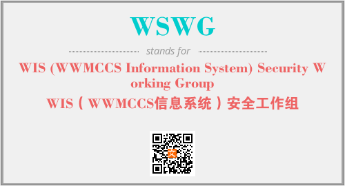 上述内容是“WIS (WWMCCS Information System) Security Working Group”作为“WSWG”的缩写,解释为“WIS(WWMCCS信息系统)安全工作组”时的信息,以及英文缩略词WSWG所代表的英文单词,其对应的中文拼音、详细解释以及在英文中的流行度和相关分类、应用领域及应用示例等。