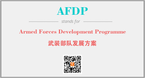 上述内容是“Armed Forces Development Programme”作为“AFDP”的缩写,解释为“武装部队发展方案”时的信息,以及英文缩略词AFDP所代表的英文单词,其对应的中文拼音、详细解释以及在英文中的流行度和相关分类、应用领域及应用示例等。