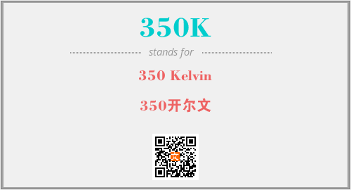 上述内容是“350 Kelvin”作为“350K”的缩写,解释为“350开尔文”时的信息,以及英文缩略词350K所代表的英文单词,其对应的中文拼音、详细解释以及在英文中的流行度和相关分类、应用领域及应用示例等。