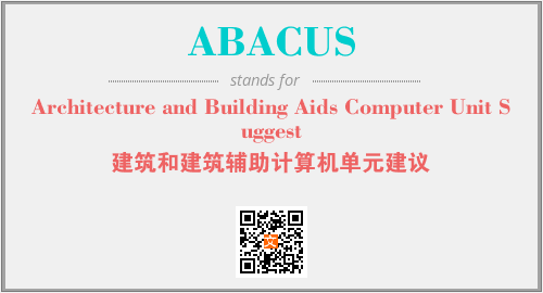 上述内容是“Architecture and Building Aids Computer Unit Suggest”作为“ABACUS”的缩写,解释为“建筑和建筑辅助计算机单元建议”时的信息,以及英文缩略词ABACUS所代表的英文单词,其对应的中文拼音、详细解释以及在英文中的流行度和相关分类、应用领域及应用示例等。