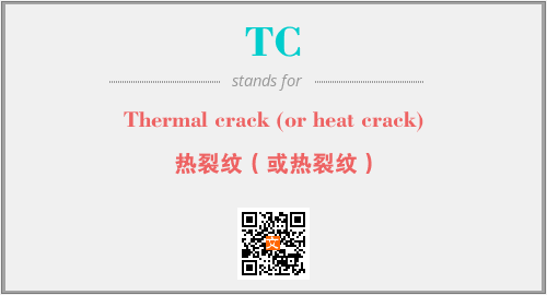 上述内容是“Thermal crack (or heat crack)”作为“TC”的缩写,解释为“热裂纹(或热裂纹)”时的信息,以及英文缩略词TC所代表的英文单词,其对应的中文拼音、详细解释以及在英文中的流行度和相关分类、应用领域及应用示例等。