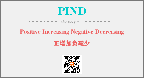 上述内容是“Positive Increasing Negative Decreasing”作为“PIND”的缩写,解释为“正增加负减少”时的信息,以及英文缩略词PIND所代表的英文单词,其对应的中文拼音、详细解释以及在英文中的流行度和相关分类、应用领域及应用示例等。