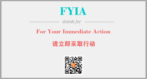 以上为For Your Immediate Action英文缩略词FYIA的中文解释,以及该英文缩写在英语的流行度、分类和应用领域方面的信息。