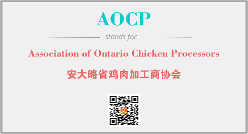 上述内容是“Association of Ontario Chicken Processors”作为“AOCP”的缩写,解释为“安大略省鸡肉加工商协会”时的信息,以及英文缩略词AOCP所代表的英文单词,其对应的中文拼音、详细解释以及在英文中的流行度和相关分类、应用领域及应用示例等。