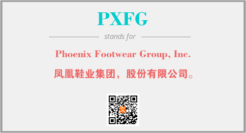 上述内容是“Phoenix Footwear Group, Inc.”作为“PXFG”的缩写,解释为“凤凰鞋业集团,股份有限公司。”时的信息,以及英文缩略词PXFG所代表的英文单词,其对应的中文拼音、详细解释以及在英文中的流行度和相关分类、应用领域及应用示例等。