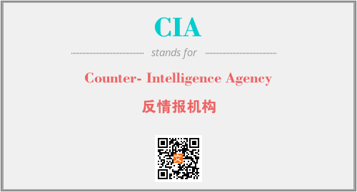 英文缩略词“CIA”经常作为“Counter- Intelligence Agency”的英文缩写来使用,中文表示:“反情报机构”。本文将详细介绍英文缩写词CIA所代表英文单词,其对应的中文拼音、详细解释以及在英语中的流行度。此外,还有关于缩略词CIA的分类、应用领域及相关应用示例等。