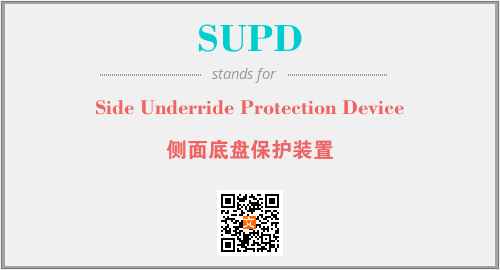 上述内容是“Side Underride Protection Device”作为“SUPD”的缩写,解释为“侧面底盘保护装置”时的信息,以及英文缩略词SUPD所代表的英文单词,其对应的中文拼音、详细解释以及在英文中的流行度和相关分类、应用领域及应用示例等。