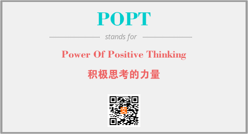 以上为Power Of Positive Thinking英文缩略词POPT的中文解释,以及该英文缩写在英语的流行度、分类和应用领域方面的信息。