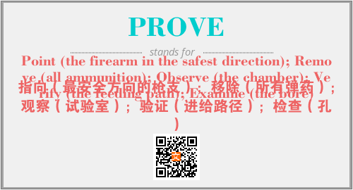 "PROVE - 指向(最安全方向的枪支);移除(所有弹药);观察(试验室);验证(进给路径);检查(孔) ." [引用日期]. <https://www.suoxie123.com/a/6138A.html>.