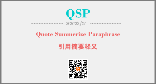 以上为Quote Summerize Paraphrase英文缩略词QSP的中文解释,以及该英文缩写在英语的流行度、分类和应用领域方面的信息。