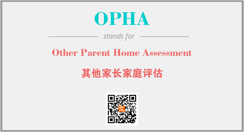 上述内容是“Other Parent Home Assessment”作为“OPHA”的缩写,解释为“其他家长家庭评估”时的信息,以及英文缩略词OPHA所代表的英文单词,其对应的中文拼音、详细解释以及在英文中的流行度和相关分类、应用领域及应用示例等。