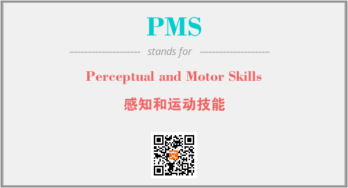英文缩略词“PMS”经常作为“Perceptual and Motor Skills”的英文缩写来使用,中文表示:“感知和运动技能”。本文将详细介绍英文缩写词PMS所代表英文单词,其对应的中文拼音、详细解释以及在英语中的流行度。此外,还有关于缩略词PMS的分类、应用领域及相关应用示例等。