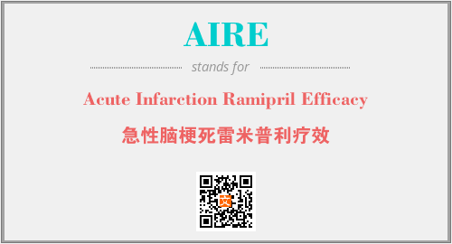英文缩略词“AIRE”经常作为“Acute Infarction Ramipril Efficacy”的英文缩写来使用,中文表示:“急性脑梗死雷米普利疗效”。本文将详细介绍英文缩写词AIRE所代表英文单词,其对应的中文拼音、详细解释以及在英语中的流行度。此外,还有关于缩略词AIRE的分类、应用领域及相关应用示例等。