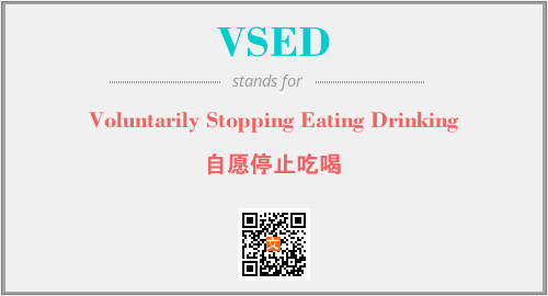 上述内容是“Voluntarily Stopping Eating Drinking”作为“VSED”的缩写,解释为“自愿停止吃喝”时的信息,以及英文缩略词VSED所代表的英文单词,其对应的中文拼音、详细解释以及在英文中的流行度和相关分类、应用领域及应用示例等。