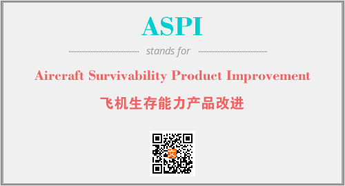 英文缩略词“ASPI”经常作为“Aircraft Survivability Product Improvement”的英文缩写来使用,中文表示:“飞机生存能力产品改进”。本文将详细介绍英文缩写词ASPI所代表英文单词,其对应的中文拼音、详细解释以及在英语中的流行度。此外,还有关于缩略词ASPI的分类、应用领域及相关应用示例等。