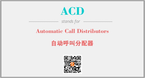 英文缩略词“ACD”经常作为“Automatic Call Distributors”的英文缩写来使用,中文表示:“自动呼叫分配器”。本文将详细介绍英文缩写词ACD所代表英文单词,其对应的中文拼音、详细解释以及在英语中的流行度。此外,还有关于缩略词ACD的分类、应用领域及相关应用示例等。