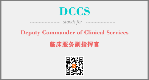 以上为Deputy Commander of Clinical Services英文缩略词DCCS的中文解释,以及该英文缩写在英语的流行度、分类和应用领域方面的信息。