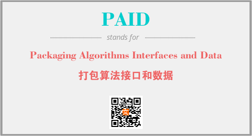 以上为Packaging Algorithms Interfaces and Data英文缩略词PAID的中文解释,以及该英文缩写在英语的流行度、分类和应用领域方面的信息。
