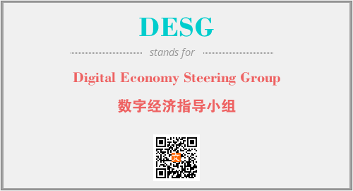 上述内容是“Digital Economy Steering Group”作为“DESG”的缩写,解释为“数字经济指导小组”时的信息,以及英文缩略词DESG所代表的英文单词,其对应的中文拼音、详细解释以及在英文中的流行度和相关分类、应用领域及应用示例等。