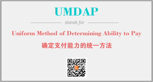 上述内容是“Uniform Method of Determining Ability to Pay”作为“UMDAP”的缩写,解释为“确定支付能力的统一方法”时的信息,以及英文缩略词UMDAP所代表的英文单词,其对应的中文拼音、详细解释以及在英文中的流行度和相关分类、应用领域及应用示例等。