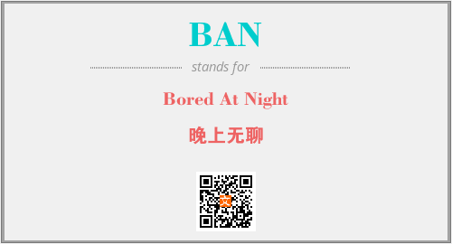 以上为Bored At Night英文缩略词BAN的中文解释,以及该英文缩写在英语的流行度、分类和应用领域方面的信息。