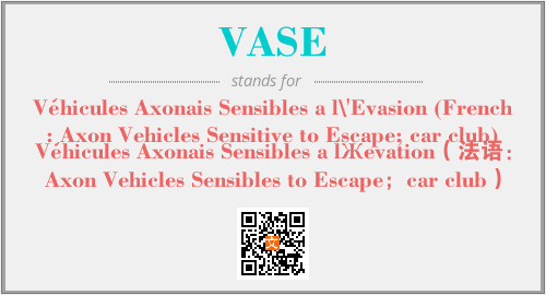 以上为Véhicules Axonais Sensibles a l\'Evasion (French: Axon Vehicles Sensitive to Escape; car club)英文缩略词VASE的中文解释,以及该英文缩写在英语的流行度、分类和应用领域方面的信息。