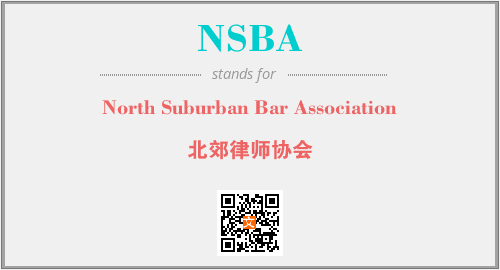 上述内容是“North Suburban Bar Association”作为“NSBA”的缩写,解释为“北郊律师协会”时的信息,以及英文缩略词NSBA所代表的英文单词,其对应的中文拼音、详细解释以及在英文中的流行度和相关分类、应用领域及应用示例等。