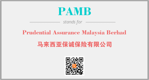 英文缩略词“PAMB”经常作为“Prudential Assurance Malaysia Berhad”的英文缩写来使用,中文表示:“马来西亚保诚保险有限公司”。本文将详细介绍英文缩写词PAMB所代表英文单词,其对应的中文拼音、详细解释以及在英语中的流行度。此外,还有关于缩略词PAMB的分类、应用领域及相关应用示例等。