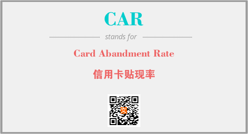 上述内容是“Card Abandment Rate”作为“CAR”的缩写,解释为“信用卡贴现率”时的信息,以及英文缩略词CAR所代表的英文单词,其对应的中文拼音、详细解释以及在英文中的流行度和相关分类、应用领域及应用示例等。
