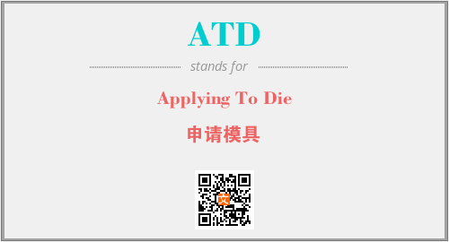 英文缩略词“ATD”经常作为“Applying To Die”的英文缩写来使用,中文表示:“申请模具”。本文将详细介绍英文缩写词ATD所代表英文单词,其对应的中文拼音、详细解释以及在英语中的流行度。此外,还有关于缩略词ATD的分类、应用领域及相关应用示例等。