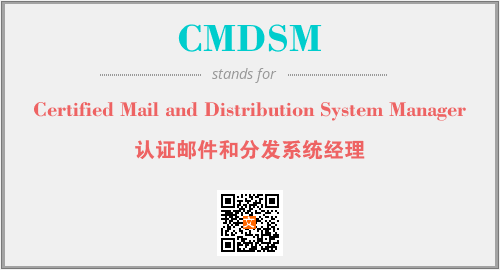 英文缩略词“CMDSM”经常作为“Certified Mail and Distribution System Manager”的英文缩写来使用,中文表示:“认证邮件和分发系统经理”。本文将详细介绍英文缩写词CMDSM所代表英文单词,其对应的中文拼音、详细解释以及在英语中的流行度。此外,还有关于缩略词CMDSM的分类、应用领域及相关应用示例等。