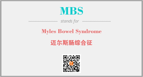 英文缩略词“MBS”经常作为“Myles Bowel Syndrome”的英文缩写来使用,中文表示:“迈尔斯肠综合征”。本文将详细介绍英文缩写词MBS所代表英文单词,其对应的中文拼音、详细解释以及在英语中的流行度。此外,还有关于缩略词MBS的分类、应用领域及相关应用示例等。