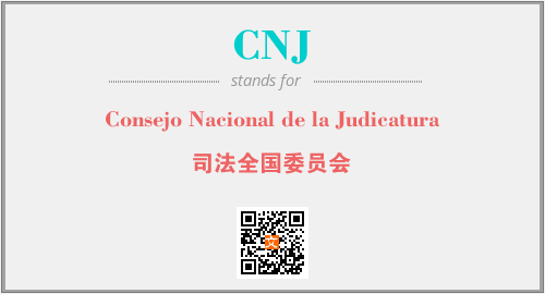 上述内容是“Consejo Nacional de la Judicatura”作为“CNJ”的缩写,解释为“司法全国委员会”时的信息,以及英文缩略词CNJ所代表的英文单词,其对应的中文拼音、详细解释以及在英文中的流行度和相关分类、应用领域及应用示例等。