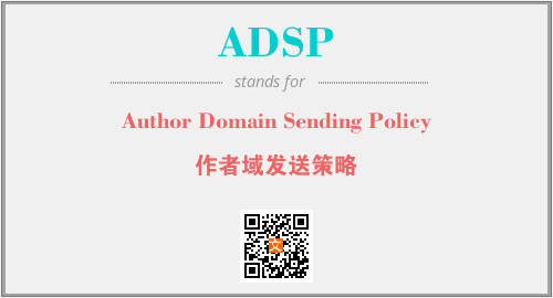 英文缩略词“ADSP”经常作为“Author Domain Sending Policy”的英文缩写来使用,中文表示:“作者域发送策略”。本文将详细介绍英文缩写词ADSP所代表英文单词,其对应的中文拼音、详细解释以及在英语中的流行度。此外,还有关于缩略词ADSP的分类、应用领域及相关应用示例等。