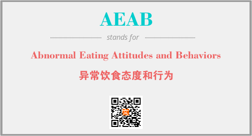上述内容是“Abnormal Eating Attitudes and Behaviors”作为“AEAB”的缩写,解释为“异常饮食态度和行为”时的信息,以及英文缩略词AEAB所代表的英文单词,其对应的中文拼音、详细解释以及在英文中的流行度和相关分类、应用领域及应用示例等。
